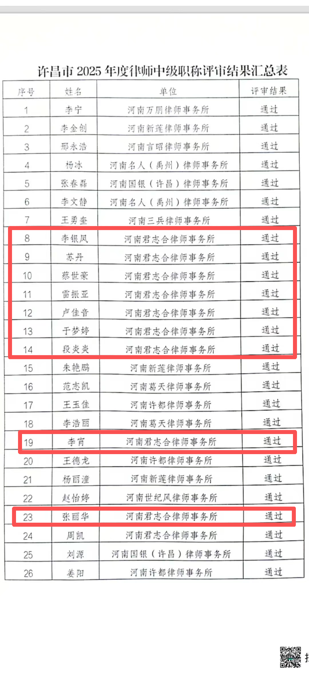 近日,经新乡市律师系列中级职称评审委员会严格评审,我所李银凤、苏丹、蔡世豪、雷振亚、卢佳音、于梦婷、段炎炎、李宵、张丽华、周凯、摆嫚嫚、范星宇共12名律师凭借扎实的专业功底、丰富的执业经验与良好的职业素养,成功通过中级律师职称评审,获评三级律师(中级职称)。
